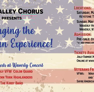 Our 2026 spring concert, "Singing the American Experience" will celebrate the 250th birthday of this nation. We hope you will join us for a wonderful program that celebrates the good that America has done, mourns the tragedies in our history, and seeks to understand what our country is supposed to be.