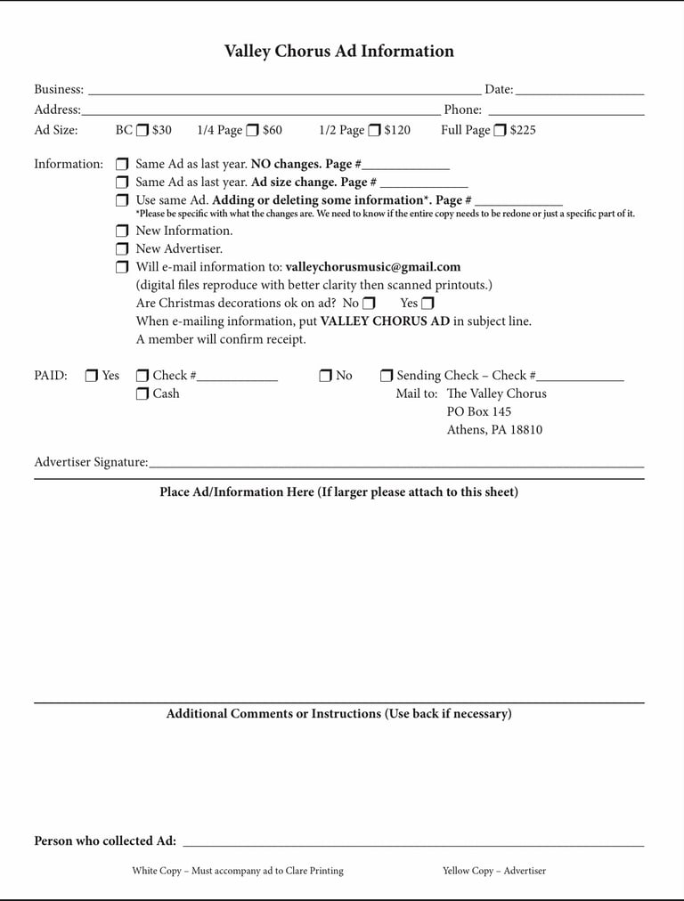 If you have any questions about advertising with Valley Chorus, please email us at valleychorusmusic@gmail.com